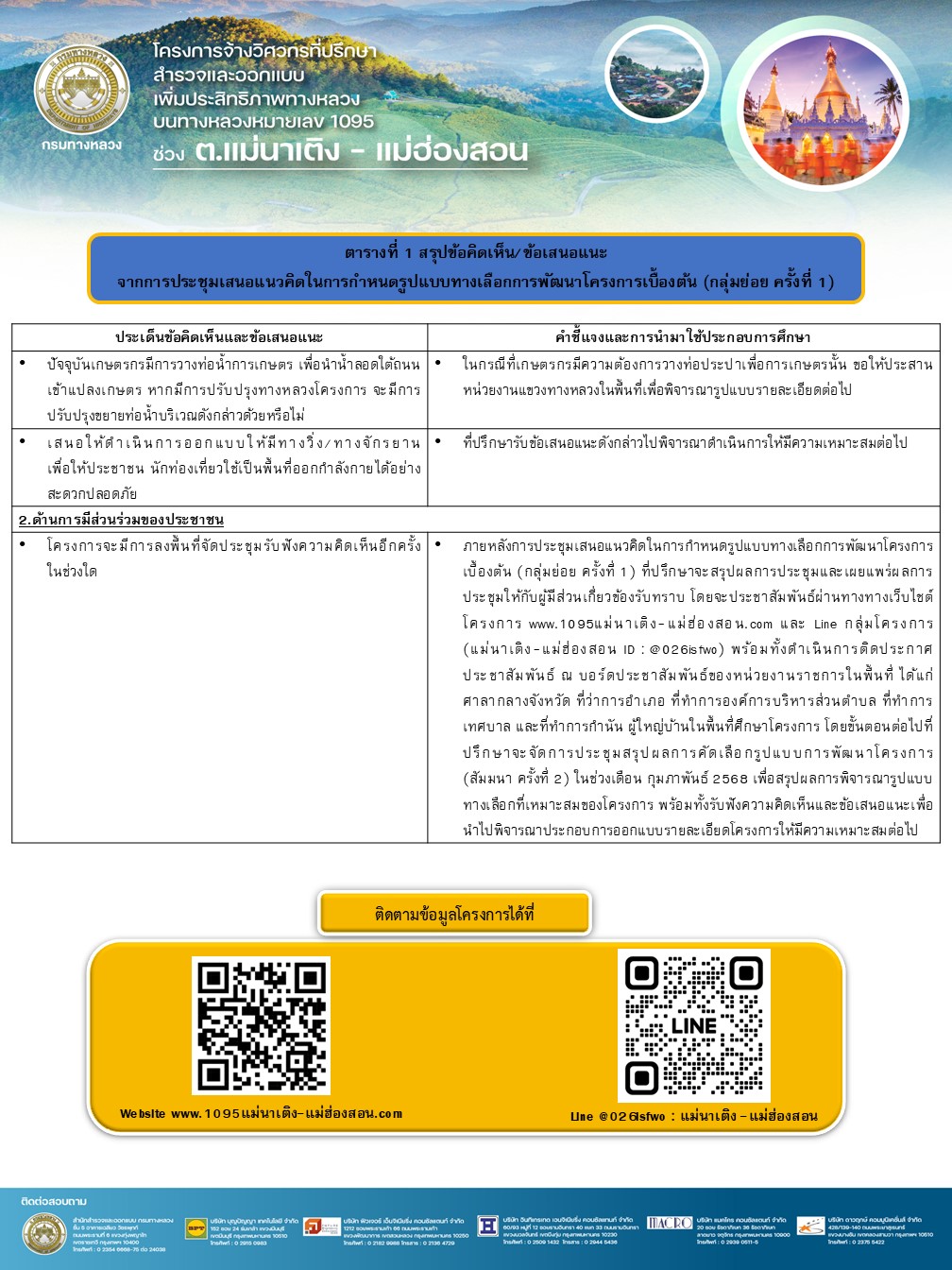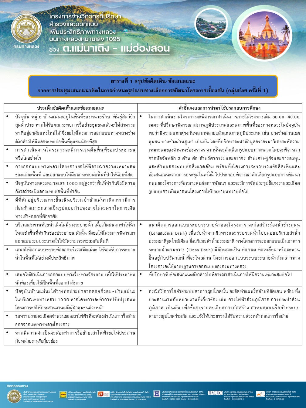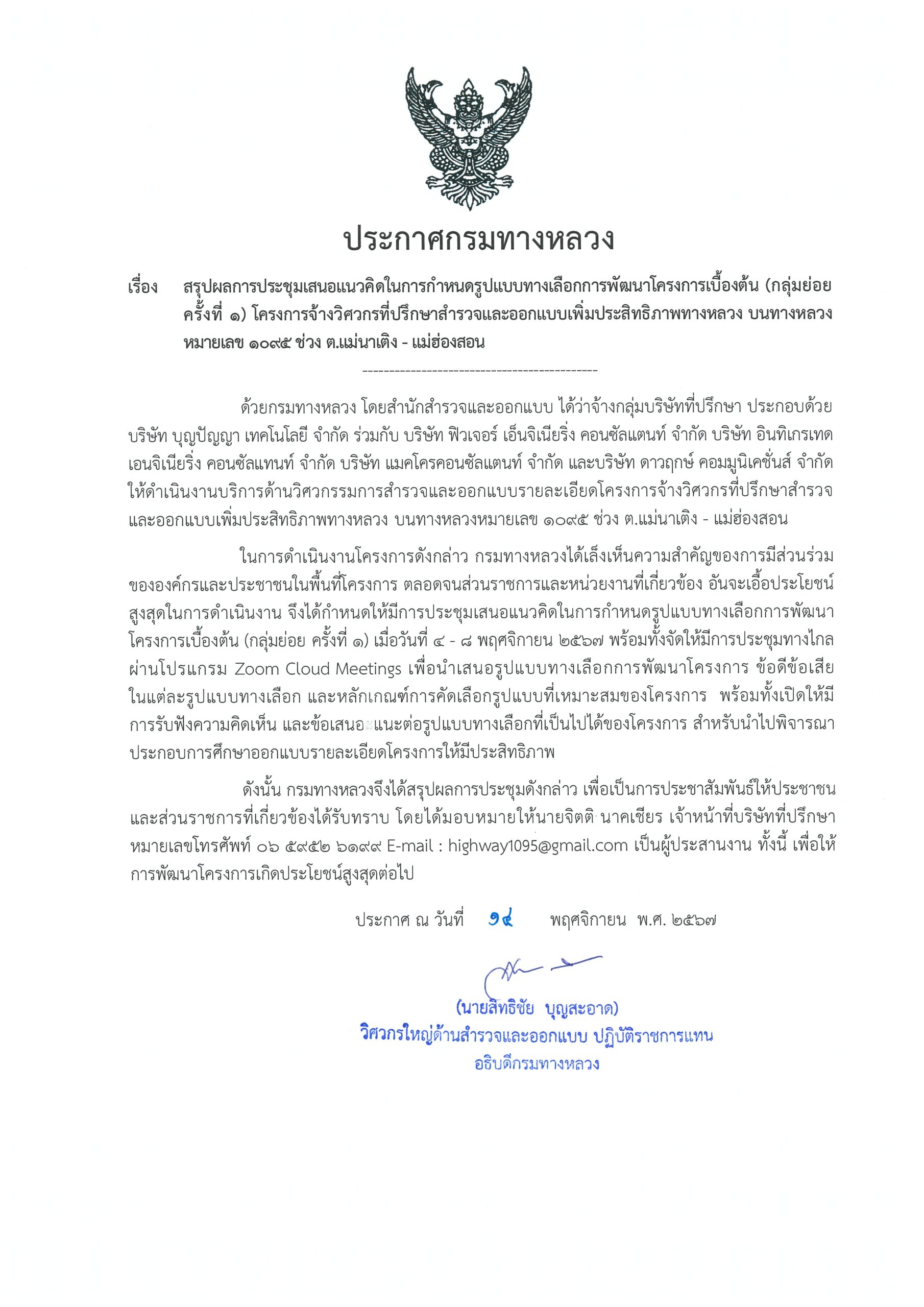 โครงการสำรวจและออกแบบเพิ่มประสิทธิภาพทางหลวงบนทางหลวงหมายเลข 1095 ช่วง ต.แม่นาเติง - แม่ฮ่องสอน