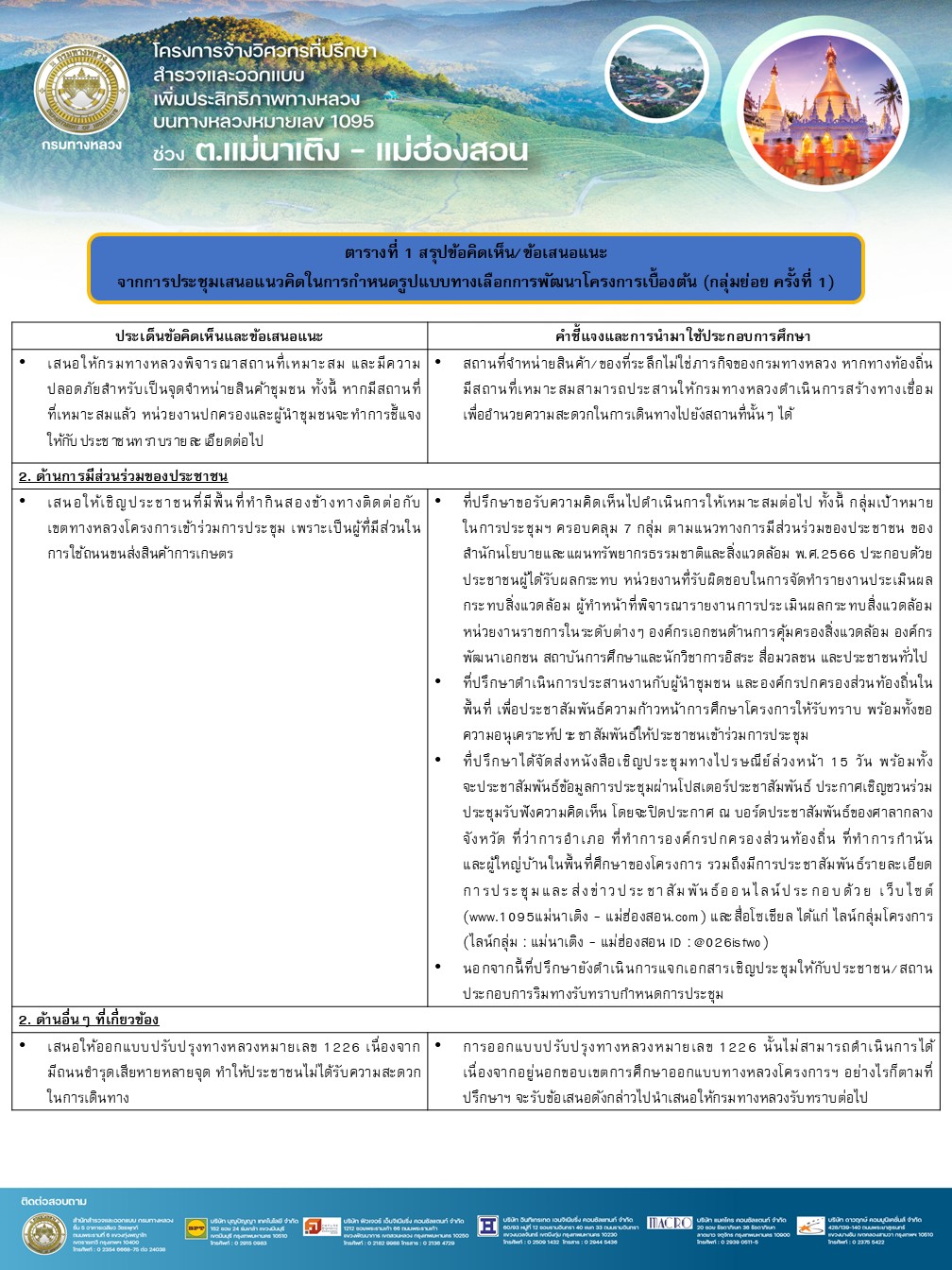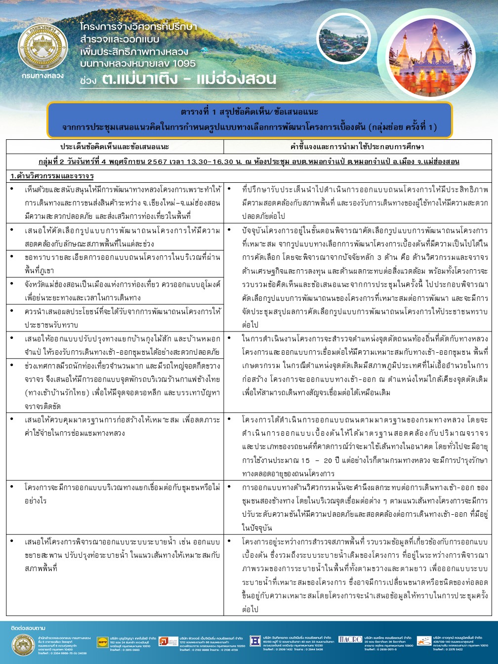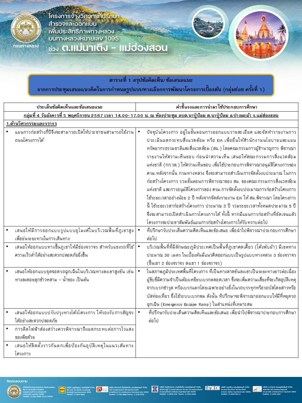 โครงการสำรวจและออกแบบเพิ่มประสิทธิภาพทางหลวงบนทางหลวงหมายเลข 1095 ช่วง ต.แม่นาเติง - แม่ฮ่องสอน
