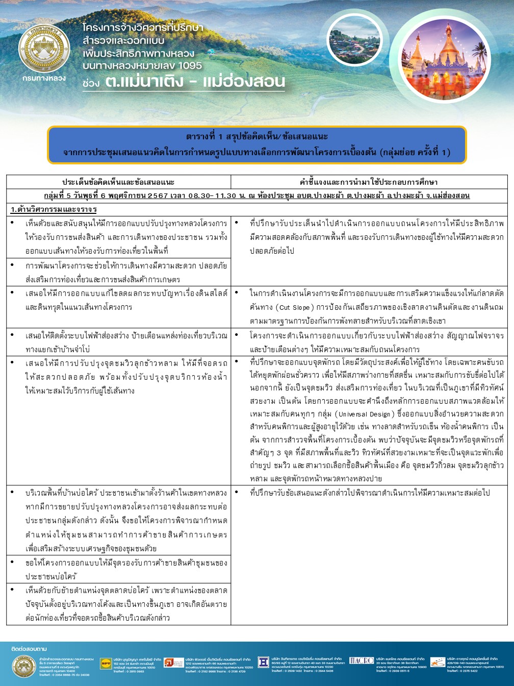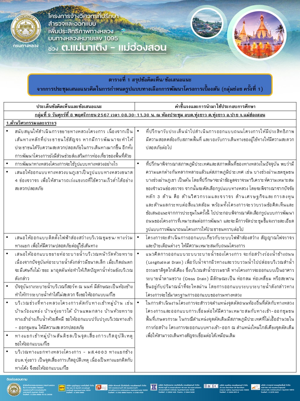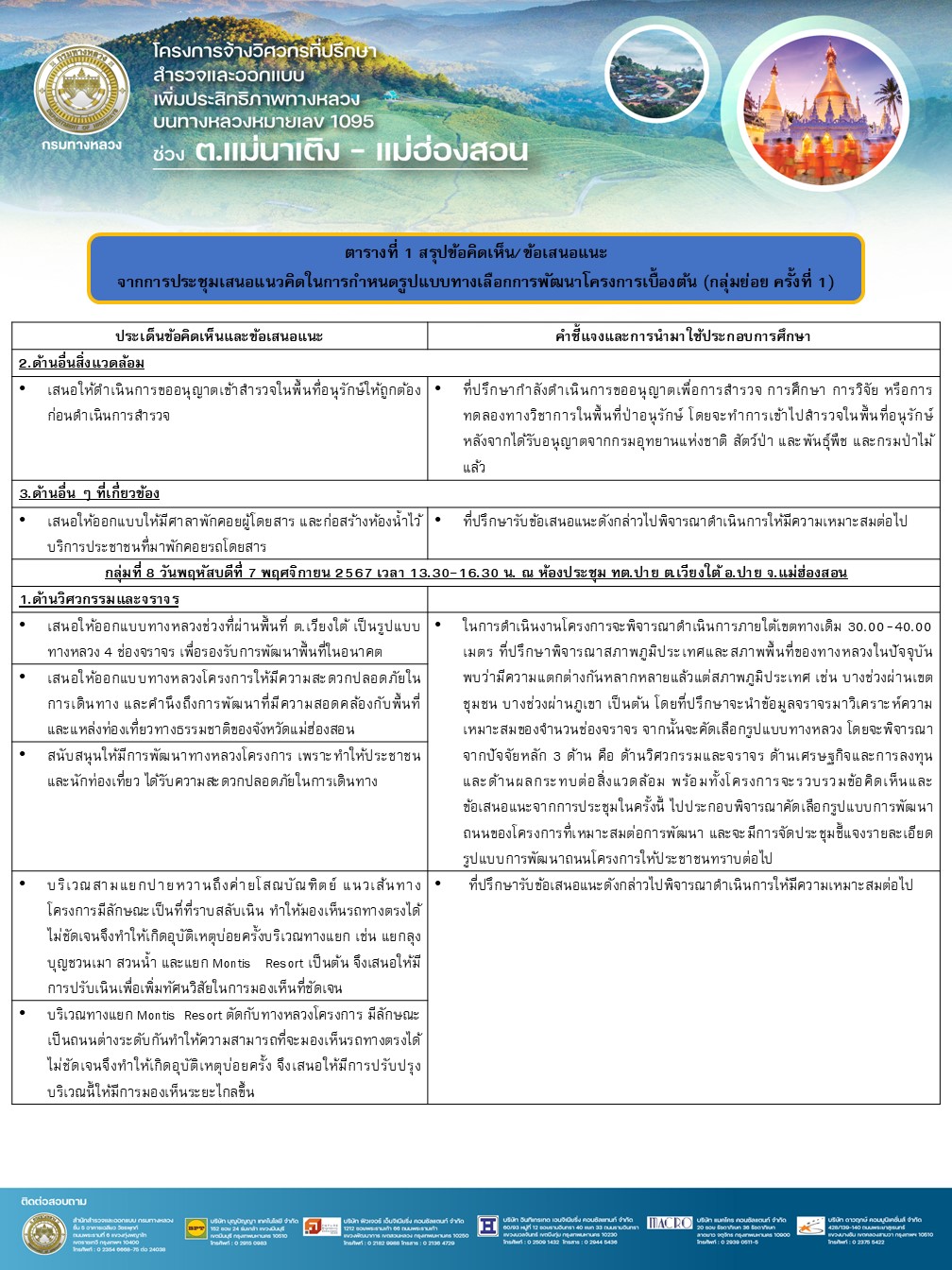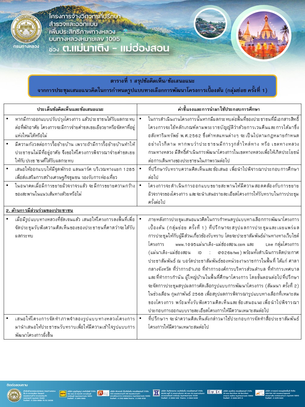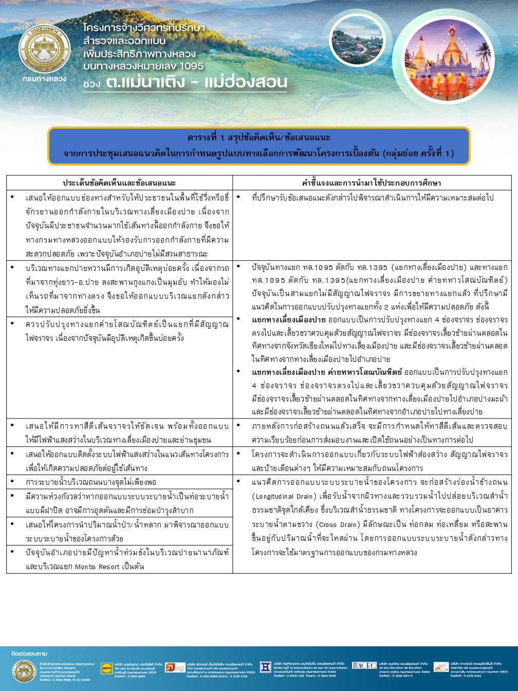 ประกาศสรุปผลการประชุมเสนอแนวคิดในการกำหนดรูปแบบทางเลือกการพัฒนาโครงการเบื้องต้น (กลุ่มย่อย ครั้งที่ 1)