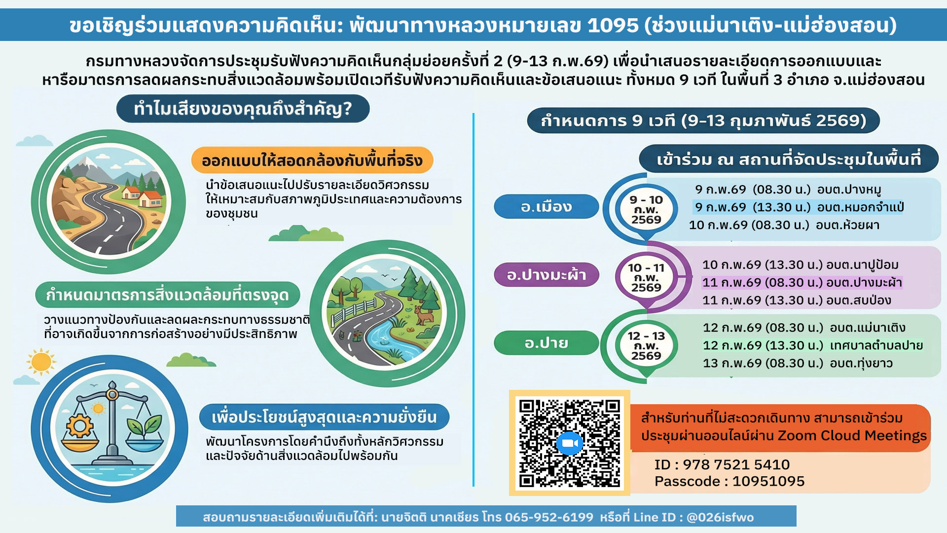 ขอเชิญร่วมแสดงความคิดเห็นต่อการพัฒนาทางหลวงหมายเลข 1095 (ช่วงแม่นาเติง-แม่ฮ่องสอน) ในวันที่ 9 – 13 กุมภาพันธ์ 2569 อ่านต่อ »